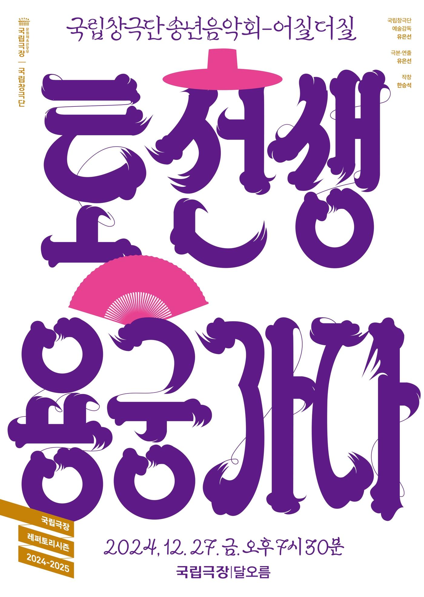 오는 27일, 국립극장 달오름극장'토선생, 용궁가다' 국립극장 무대 첫선국립창극단 '송년음악회- 어질더질' 공연 포스터(국립극장 제공)MZ세대 '절창'이라 불리는 김준수(왼쪽)와 유태평양. 사진은 지난 3월 공연한 국립창극단의 창극 '리어' 프로필관련 키워드김준수유태평양국립창극단수궁가송년음악회어질더질정수영 기자 배우 문근영, 9년 만에 대학로 출격…연극 '오펀스' 3월 개막전통 민요의 화려한 변신…명창 김영임, 2월 '소리 孝 콘서트'관련 기사'국악계 아이돌' 김준수, 솔로무대 출격…국립창극단 송년음악회변화 꾀한 2025 전주세계소리축제…예술·확장·대중성 확보"심청이는 효, 심봉사는 자기 연민에…우린 모두 눈먼 존재"(종합)'국악계 아이돌' 김준수 "심봉사 역 덕분에 '새로운 눈' 뜨게 됐다"'국악계 아이돌' 김준수, 샤일록 역으로 출격…'베니스의 상인들'