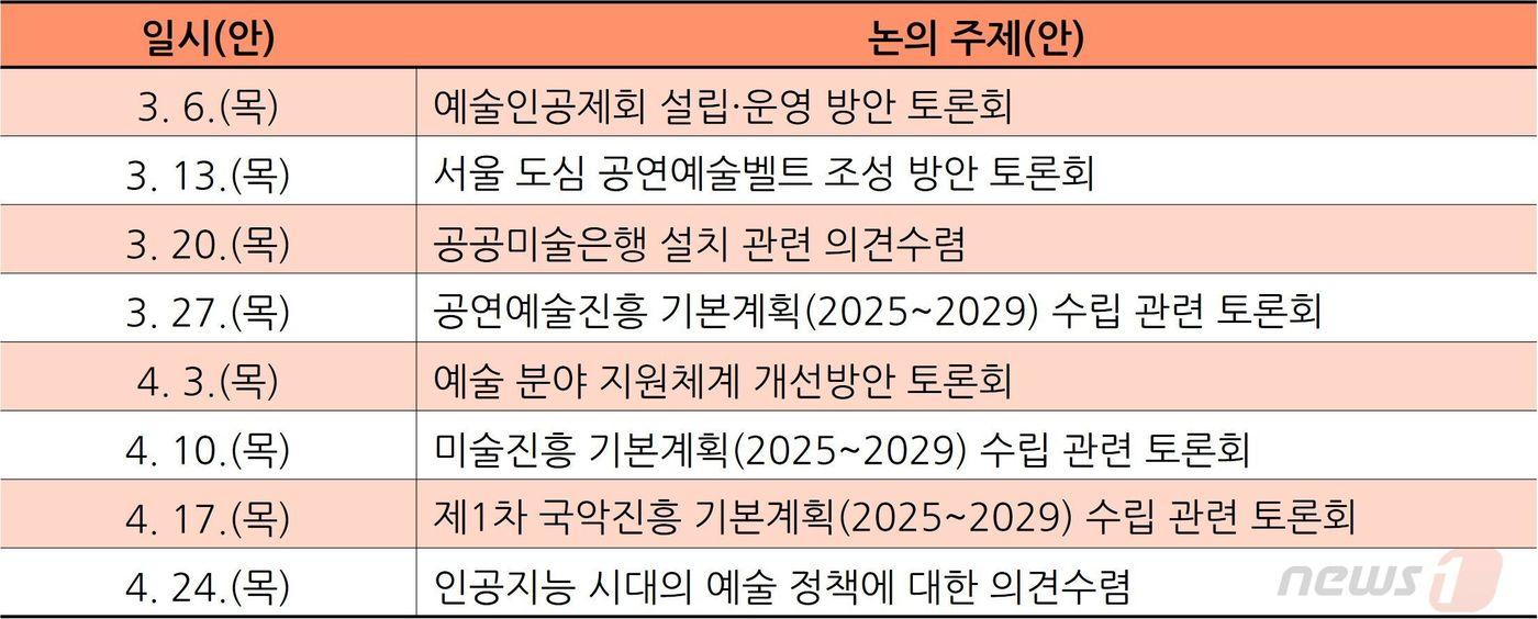 관련 키워드오후 3시의 예술정책 이야기공청회박정환 문화전문기자 종교계 "세계청년대회 특별법은 종교갈등의 씨앗"이영훈 목사 "성탄의 기쁨이 평화와 희망 되길"관련 기사문체부, 국악진흥기본계획에 현장의견 더 한다"예술지원기관·체계 개선안 찾는다"…2일 '오후 3시의 예술정책 이야기'유인촌 문체부 장관 "공연예술 지원체계 '지역 중심'으로 혁신""서울 도심에 공연예술벨트 생긴다"…13일 공청회유인촌 "예술인공제회, 버팀목 역할하도록 만들겠다"