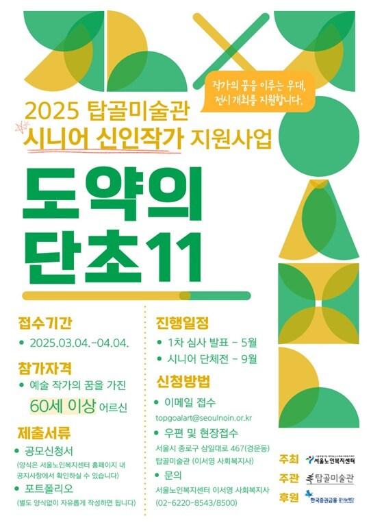서울노인복지센터 탑골미술관 공모전에 '시니어부' 신설도약의 단초 공모전관련 키워드도약의 단초 공모전박정환 문화전문기자 종교계 "세계청년대회 특별법은 종교갈등의 씨앗"이영훈 목사 "성탄의 기쁨이 평화와 희망 되길"