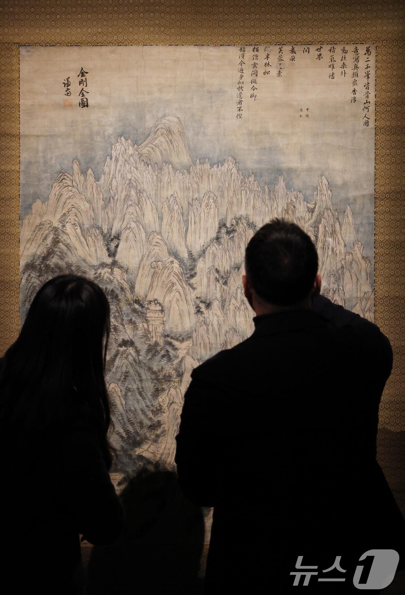 31일 오전 경기 용인시 처인구 호암미술관에 겸재 정선의 금강전도가 전시돼 있다. 삼성문화재단과 간송미술문화재단이 공동 개최한 '겸재 정선'전은 다음 달 2일부터 6월 29일까지 경기 용인 호암미술관에서 열린다. 2025.3.31/뉴스1 ⓒ News1 김영운 기자