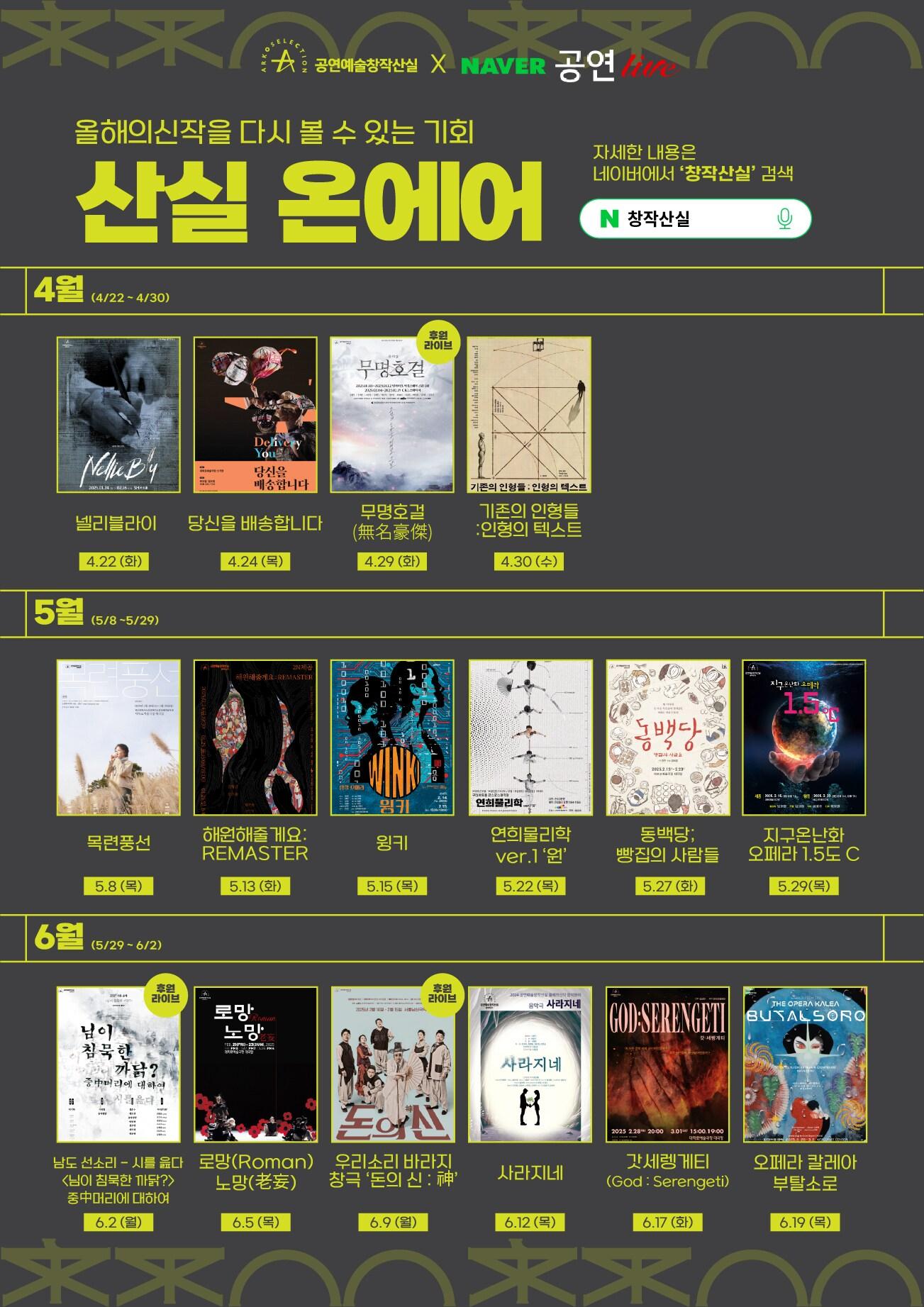 17회 창작산실 공연, 22일부터 온라인 상영뮤지컬 '넬리블라이'부터 두 달간 16편 공개17회 창작산실 ‘산실 온에어’ 네이버TV 중계 라인업(한국문화예술위원회 제공)관련 키워드한국문화예술위원회아르코예술위정병국창작산실산실온에어정수영 기자 전통 민요의 화려한 변신…명창 김영임, 2월 '소리 孝 콘서트'매주 쏟아지는 신간 200권의 파도…한 출판 기자의 '독서 연가'관련 기사심은우, 연극 무대 복귀…"배우로 나아갈 용기 얻어" [N이슈]신구·손열음부터 최호종까지…기초예술계로 번지는 기부 릴레이아르코, 문화예술로 ESG 실천…나주시와 지역 상생 논의"'문화누리카드' 잔액 확인하셨나요? 31일까지 꼭 사용하세요"임성남 60년 발레 기록을 한자리에…아르코 '원 테이블 5'