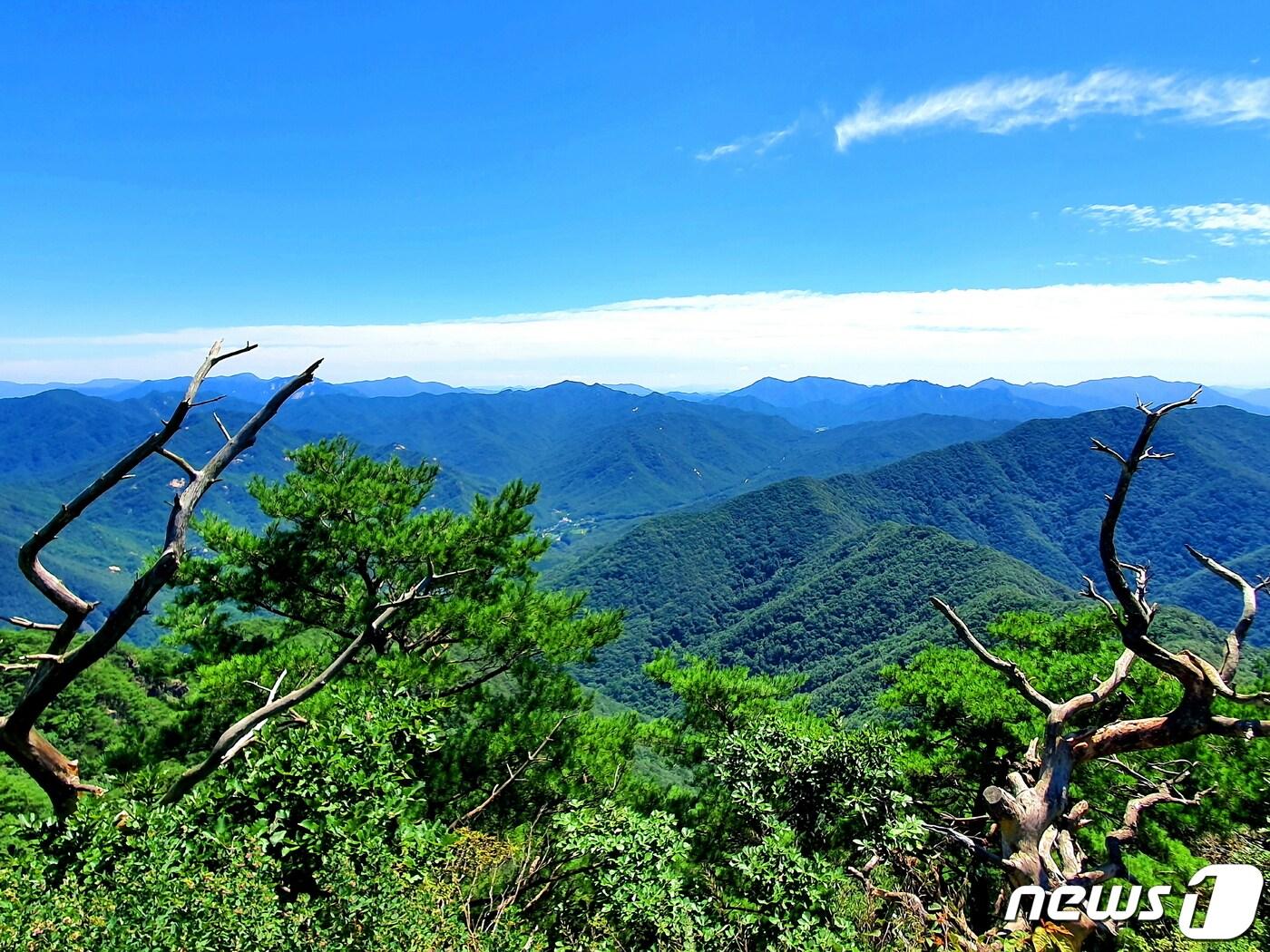 속리산국립공원② 군자산-쌍곡폭포 10.2㎞…김홍도 울고간 첩첩산중 중심 네발로 정상 서면 '산악제국' 아득…칠보산 지나 '알탕 금지' 쌍곡계곡 사이다 맛군자산 정상에서. 고사목 두 그루가 사슴의 뿔과 같다. 그 사이로 펼쳐진 ‘산의 바다’ 끝에 백두대간 능선이 늘어서 있다소금강 풍경. 금강산의 한 조각을 옮겨놓은 듯해서 소금강으로 부른다. 사진 이호성ⓒ News1 최수아 디자이너군자산 등산로. 계단은 거의 없이, 나무뿌리와 돌을 밟고 올라서는 거친 오르막이다.중간 전망대. 한 시간 이상을 치고 오른 오르막에서 마침내 전망이 터진다. "이 맛에 산에 오는거야!"라고 감탄하는 사람들.군자산 정상에서 바라본 ‘산의 제국’. 바로 앞산은 작은군자산, 오른쪽 끝에 톱니같은 대야산과 속리산 봉우리들이 하늘과 맛닿아 있다.숲틈 사이로 보이는 군자산 정상을 카메라로 당겨 보았다. 흔들림 없을 군자의 모습이다너덜길. 하산로의 반은 너덜길이다. 발목이 꺾이거나 미끄러지지 않도록 조심해야 한다. 발목이 긴 중등산화와 스틱이 필수다단풍나무와 갈색여치. 고사목 나무뿌리와 그 위에 드리워진 단풍나무 가지가 마치 하나의 분재처럼 보인다. 갈색여치가 많이 보이면 가을이다. 씨르르 씨르르~ 울어서 씨르래기라고 부르던 곤충소나무 숲 위 칠보산. 일곱 개의 봉우리가 보석같이 반짝인다 하여 칠보산이다.쌍곡계곡. 우거진 수풀 사이로 흘러가는 맑은 물과 시원한 그늘. 끝에 칠보산의 여러 봉우리가 보인다쌍곡폭포의 8월. 다이내믹하게 쏟아져 내리는 폭포에서 피서를 즐기는 청년들. 레인저들이 이들을 위험선 안쪽으로 유도했다괴산 산막이옛길(4km)에서 바라보는 괴산호 풍경. 산막(山幕)이 있던 길이라는 뜻이다관련 키워드신용석레인저가떴다