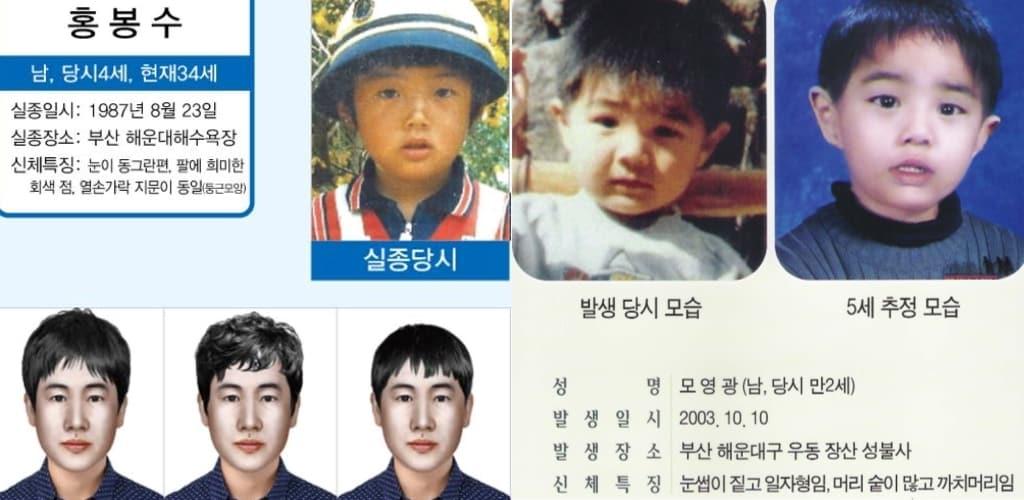 (왼쪽)올해 5월 부산경찰청이 장기실종아동 홍봉수 군(현재나이 34)의 현재모습을 예측한 '몽타주' 사진과 (오른쪽)지난 2007년 미국 국립 실종학대아동방지센터(NCMEC)가 모영광군이 만 5세로 성장한 모습을 얼굴변형 프로그램으로 예측한 사진.ⓒ News1