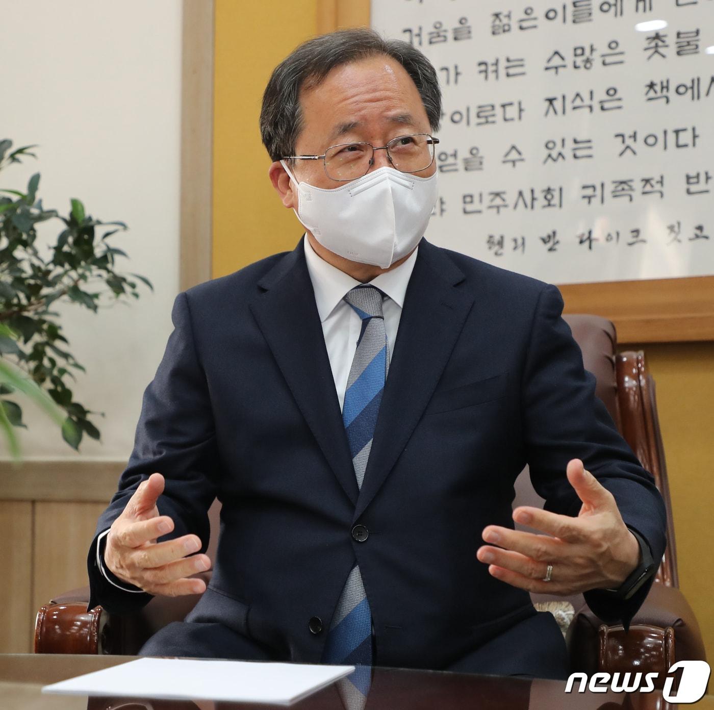 김석준 부산시 교육감이 5일 오후 부산 부산진구 부산광역시교육청에서 뉴스1과 인터뷰를 하고 있다. 2022.4.5/뉴스1 ⓒ News1 김영훈 기자