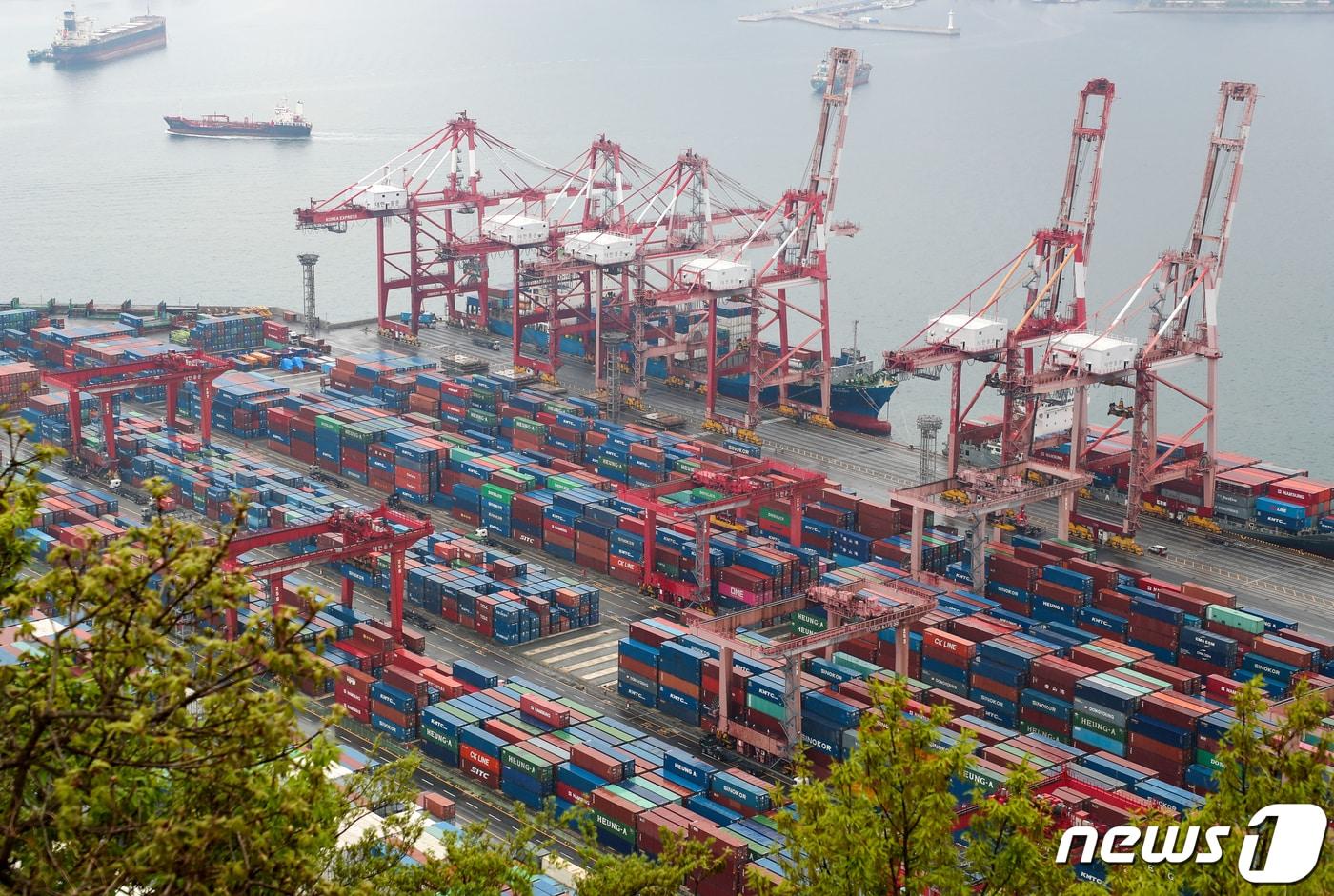 21일 부산 남구 신선대 부두에서 컨테이너선들이 하역작업을 하고 있다.2022.4.20/뉴스1 ⓒ News1 김영훈 기자