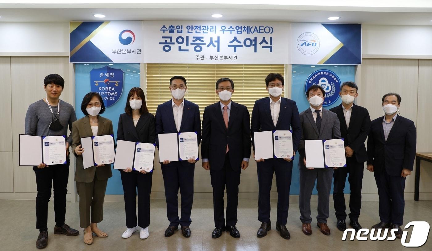 22일 업체관계자들이 AEO인증 수여식 후 기념사진을 찍고 있다.2022.9.22(부산본부세관 제공))