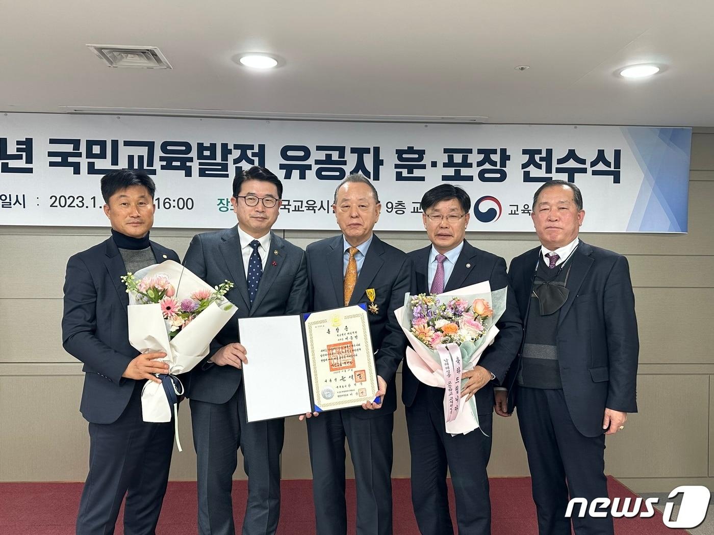 남해해성고 이중명 이사장(가운데)이 ‘국민훈장 목련장’을 수상했다(해성학원 제공)한송학 기자 비보호 좌회전 승용차가 직진 오토바이 '쾅'…1명 사망합천군 "민선 8기 공약 이행 순항…끝까지 완료"