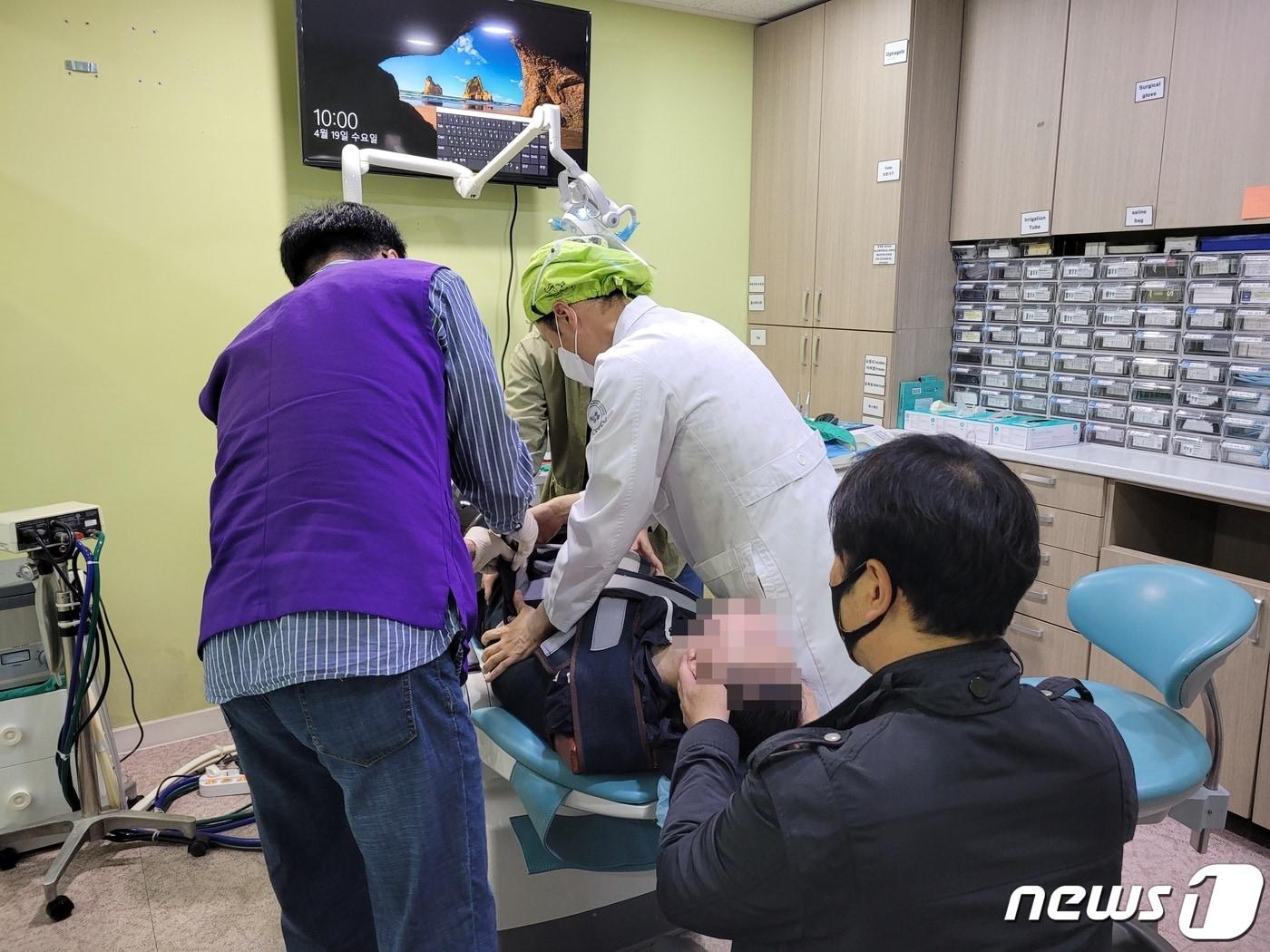 발치도 전신마취…부산 상시 마취진료 치과 단 1곳뿐"충치 치료 시기 놓쳐 심정지 발생, 중환자실 간 적도"19일 부산대병원 장애인구강진료센터를 찾은 성아름씨가 진료를 받기 위해 페디랩을 착용하고 있다.2023.4.19/뉴스1 ⓒ News1 조아서 기자부산 연제구 부산의료원에 구비된 '휠체어 체중계'. 휠체어를 탄 장애인이 체중계에 오른 뒤, 휠체어 무게를 따로 측정해 두 값을 뺀 무게로 장애인의 체중을 측정한다..2023.4.19/뉴스1 ⓒ News1 조아서 기자19일 부산시청 앞에서 열린 '장애인치과병원 설립 촉구를 위한 기자회견에서 중증장애인과 그의 가족들이 피켓을 들고 있다.2023.4.19/뉴스1 ⓒ News1 조아서 기자관련 키워드장애인의날중증장애인건강권건강증진권치과부산의료원부산대병원장애인구강진료센터
