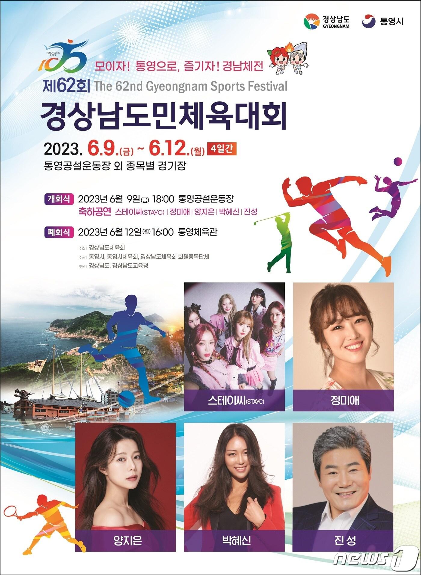 블랙이글스 에어쇼, 스테이씨·트로트 가수 축하공연제62회 경남도민체육대회 포스터.(통영시 제공)관련 키워드통영경남도민체전통영공설운동장강미영 기자 통영항 명품 전망공간 조성 속도…오션뷰케이션 21일 기공식조근제 함안군수, 새해 맞아 읍면 10곳 방문