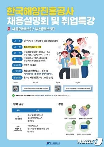 내달 18일 서울 코엑스, 27일 부산 벡스코'한국해양진흥공사 채용설명회 및 취업특강' 홍보포스터(해진공 제공)관련 키워드한국해양진흥공사관련 기사중국 춘제 성수기에 부산항발 컨테이너 운임 상승세해진공 'AI기본법' 시행 앞두고 해운항만 기업 가이드라인 마련부산 지역 해양수산계, 해수부 이전 이후 첫 신년인사회부산 해양기관들 "북극항로 개척으로 해양영토 확장" 새해 한목소리'인기강사' 최태성·이도, 북극항로 일타강의 선보인다