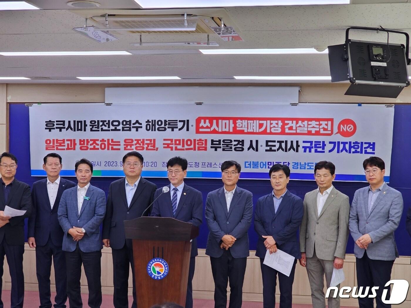 "경남·부산서 49.5㎞ 떨어진 방폐장, 중단 요구해야"민주당 경남도당이 25일 경남도청 프레스센터에서 기자회견을 열고 쓰시마시가 추진 의사를 밝힌 방폐장 건설에 대해 부울경 시도지사의 입장 표명을 촉구하고 있다. 2023.9.25 ⓒ 뉴스1 박민석 기자관련 키워드더불어민주당 경남도당쓰시마대마도방폐장핵 폐기물부울경부울경 시도지사
