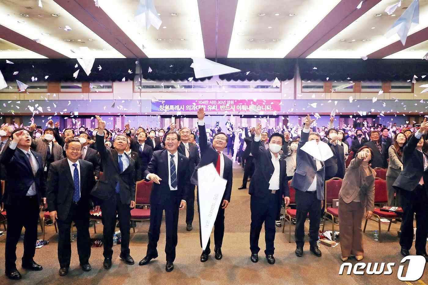지난 3월 의대 유치 범시민추진위 출범 후 서명운동 시작창원시민·경남도민 참여…정부 신설 정책 확정 때까지 계속지난 3월13일 창원컨벤션센터에서 '창원 의과대학 유치 범시민추진위원회'가 출범한 가운데 행사 참석자들이 의과대 유치 염원을 담은 종이비행기를 날리고 있다.(창원시 제공)관련 키워드창원의대의과대학유치서명운동강정태 기자 '층간소음 시비' 이웃에 흉기 휘두른 40대 실형김미나 창원시의원 '이태원 참사 유족 모욕' 최초 보도한 기자 불송치관련 기사"용인 반도체 클러스터 그대로 두고, 호남에 신규 투자 유치해야"경남 간 정청래, 굴 가공 체험…尹 공판 지연에 "좋은 인상 주겠나"(종합)정청래 "국힘 당명 바꾼들 '尹못잊어당'…두 특검 받아야 진정성"경남도, 마산로봇랜드 신규 민간투자자 공모…내년 6월 접수노태악 대법관 후임 후보 39명 심사동의…여성 4명·현직 법관 36명