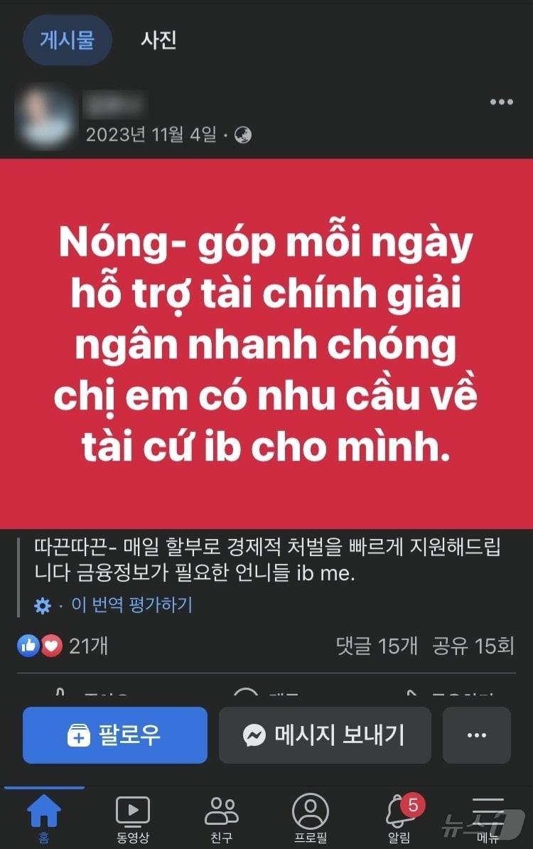 부산경찰청, 베트남 범죄집단 총책 등 3명 구속당구장으로 위장 외국인 전용 불법 도박장 운영…도박 자금 융통도불법 대부업 SNS 광고 게시물.(부산경찰청 제공)부산 사상구 외국인 전용 불법 홀덤펍 현장.(부산경찰청 제공)관련 키워드형사기동대베트남외국인전용홀덤펍불법대부조아서