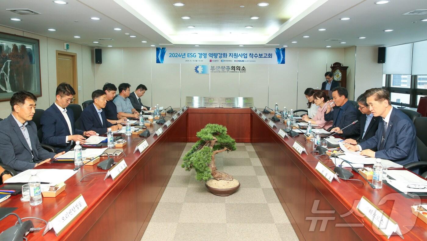 부산상공회의소는 10일 부산시, 중소벤처기업진흥공단과 함께 ESG경영 확산을 위해 원청기업과 협력기업 간의 상생 모델을 기반으로 하는 'ESG 경영 역량강화 지원사업' 착수보고회를 개최했다.(부산상의 제공)