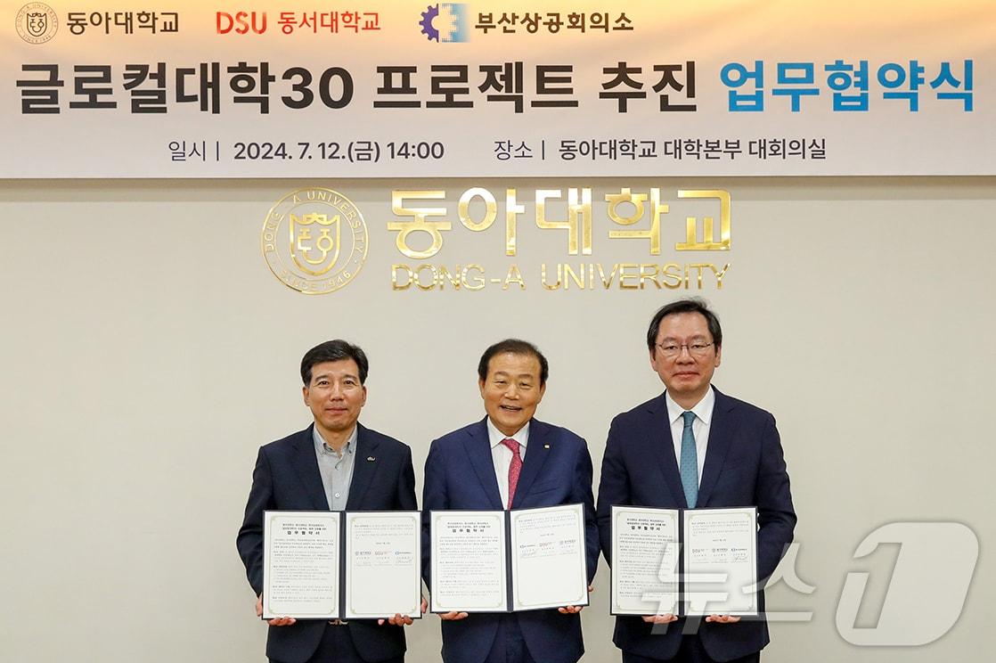 지역경제 발전을 위한 산학협력 정책 수립동아대학교·동서대학교는 부산상공회의소와 '글로컬대학30 프로젝트' 추진을 위한 업무 협약을 체결했다고 15일 밝혔다. 왼쪽부터 이해우 동아대 총장, 양재생 부산상의 회장, 장제국 동서대 총장. (동아대 제공)윤일지 기자 이한림 부경대 교수, 기후에너지환경부 장관 표창 받아[뉴스1 PICK]'겨울 날씨 20도' 1월 관측 사상 최고 기록