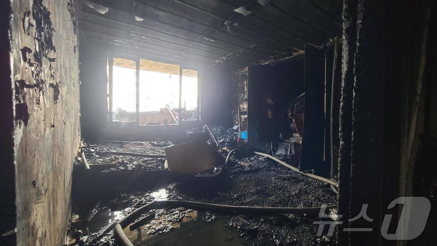 27일 오전 부산 사하구 장림동 아파트 화재 현장(부산소방재난본부 제공)