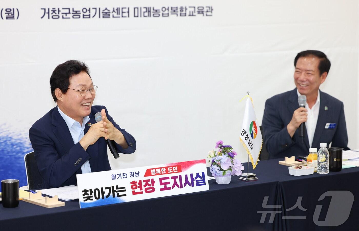 찾아가는 현장 도지사실 열어 지역 현안·민생 의견 경청"수시로 현장 찾아 도민 의견 경청해 도정에 반영할 것"박완수 경남지사(왼쪽)가 29일 거창군 농업기술센터에서 열린 '찾아가는 현장 도지사실' 행사에서 도민의 질문에 답하며 환하게 웃고 있다.(경남도 제공)관련 키워드박완수경남지사도민만남의날민생청취강정태 기자 '층간소음 시비' 이웃에 흉기 휘두른 40대 실형김미나 창원시의원 '이태원 참사 유족 모욕' 최초 보도한 기자 불송치관련 기사"경남도민 49.5%, 박완수 지사 잘하고 있다…1.4%p↑"경남도 사회대통합위, 공공 배달앱 정착 등 민생 현안 19건 제안박완수 경남지사, 산하 공공기관에 "조직 효율화·책임경영" 주문경남도, '지역 빛낸 도민' 초청 행사…"정책으로 현장 성과 연결"[오늘의 주요일정] 부산·경남(8일, 목)