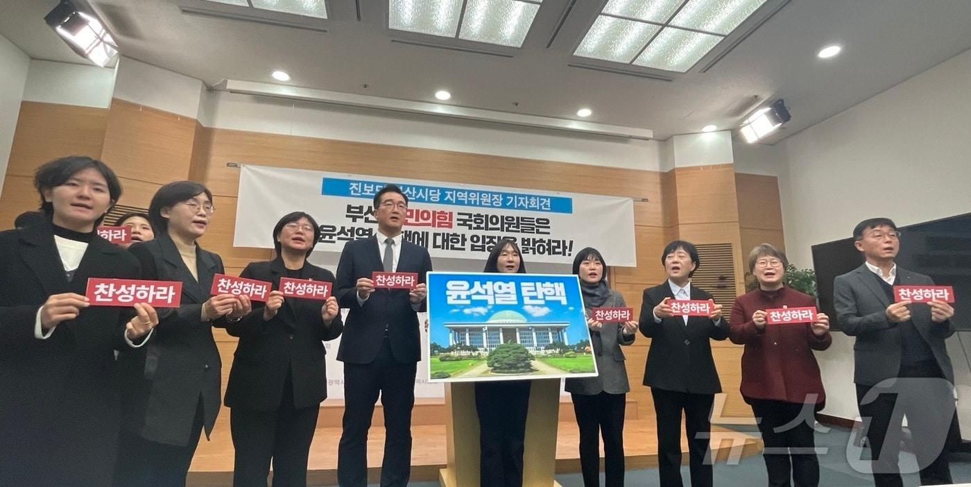 진보당 부산시당이 6일 오전 부산시의회에서 부산 국민의힘 국회의원에게 윤석열 대통령의 탄핵에 찬성을 촉구하는 기자회견을 하고 있다.2024.12.6/ⓒ News1 장광일 기자관련 키워드부산진보당국민의힘비상계엄입장장광일 기자 '겨우 잠들었는데 강아지 짖는 소리가…' 흉기 들고 이웃 찾아간 50대부산 연산동서 트럭이 전신주 충격해 인근 정전…한전 복구 중관련 기사李대통령 "여야, 국익·균형발전 힘 모아야"…국힘 회동 불참(종합)李대통령 "광역도시 탄생, 균형발전 큰 계기…함께 힘 모아달라"이혜훈 부적합 68% 적합 20%…與 지지층도 52% 반대[오늘의 주요일정] 정치·정부 (14일, 수)진보당 윤택근 부산시장 출마선언…"좋은 일자리로 부산 살릴 것"