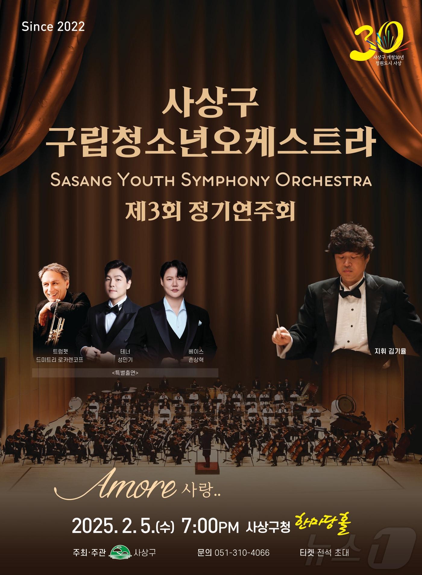 부산 사상구립청소년 오케스트라 제3회 정기연주회 안내 포스터.(사상구 제공)관련 키워드부산사상구립청소년오케스트라연주회장광일 기자 "빨라서 좋다"…KTX-이음 이용객으로 부산 부전역 '북적'부산중부 건조주의보→건조경보 격상관련 기사부산 사상구, 몽골 전통예술공연단 초청 공연부산 사상구, 광복 80주년 맞아 나라사랑 음악회 개최