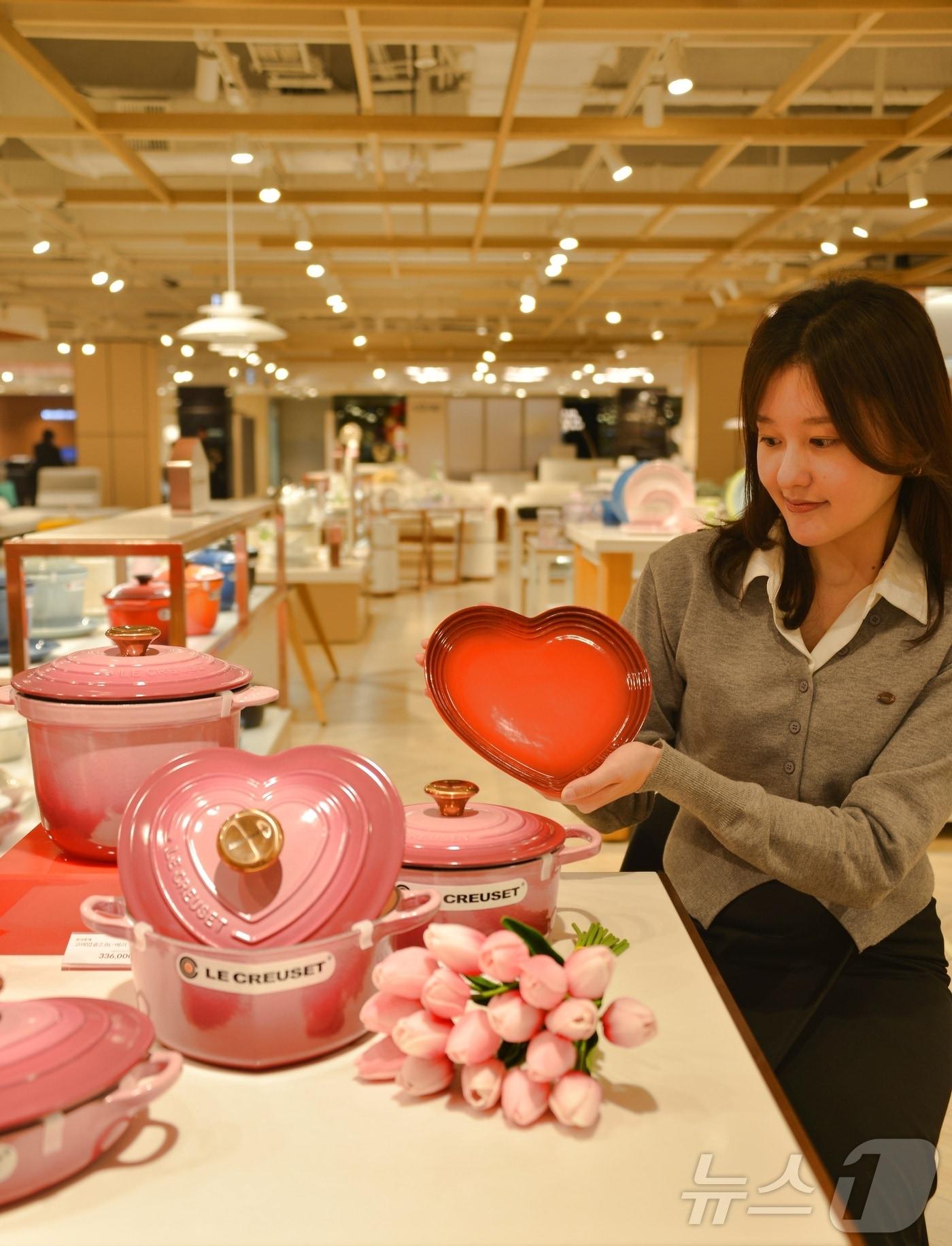 부산본점 6층 프랑스 주방 용품 브랜드 르쿠르제 매장에서 직원이 행사 상품을 안내하고 잇다(롯데백화점 제공)