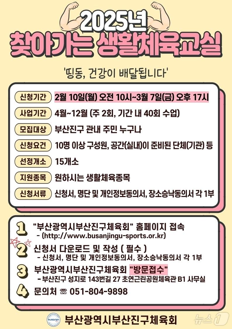 부산진구 찾아가는 생활체육교실 안내 포스터.(부산진구 제공)관련 키워드부산부산진찾아가는생활체육교실강좌장광일 기자 '겨우 잠들었는데 강아지 짖는 소리가…' 흉기 들고 이웃 찾아간 50대부산 연산동서 트럭이 전신주 충격해 인근 정전…한전 복구 중
