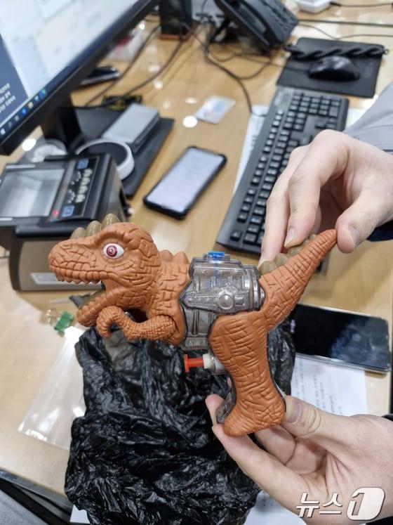30대 남성이 은행 강도 행각을 벌일 때 사용한 공룡 모양 물총(시장경찰서 제공)관련 키워드은행강도부산기장기장경찰서강도관련 기사'검은봉지에 물총' 은행강도…바로 옆 특수부대 출신 고객 있었다"아들 준비물 사줄 돈 없어" 물총 들고 강도 행각 30대, 2심도 '집유'"아들 입학 준비물 사줄 돈 없어서" 물총 들고 은행 턴 30대 집유BNK부산은행, 강도미수범 잡은 용감한 시민에 감사패 전달"2분짜리 은행 강도, 아무 일도 없었으면 괜찮나"…尹 '계엄' 꾸짖다
