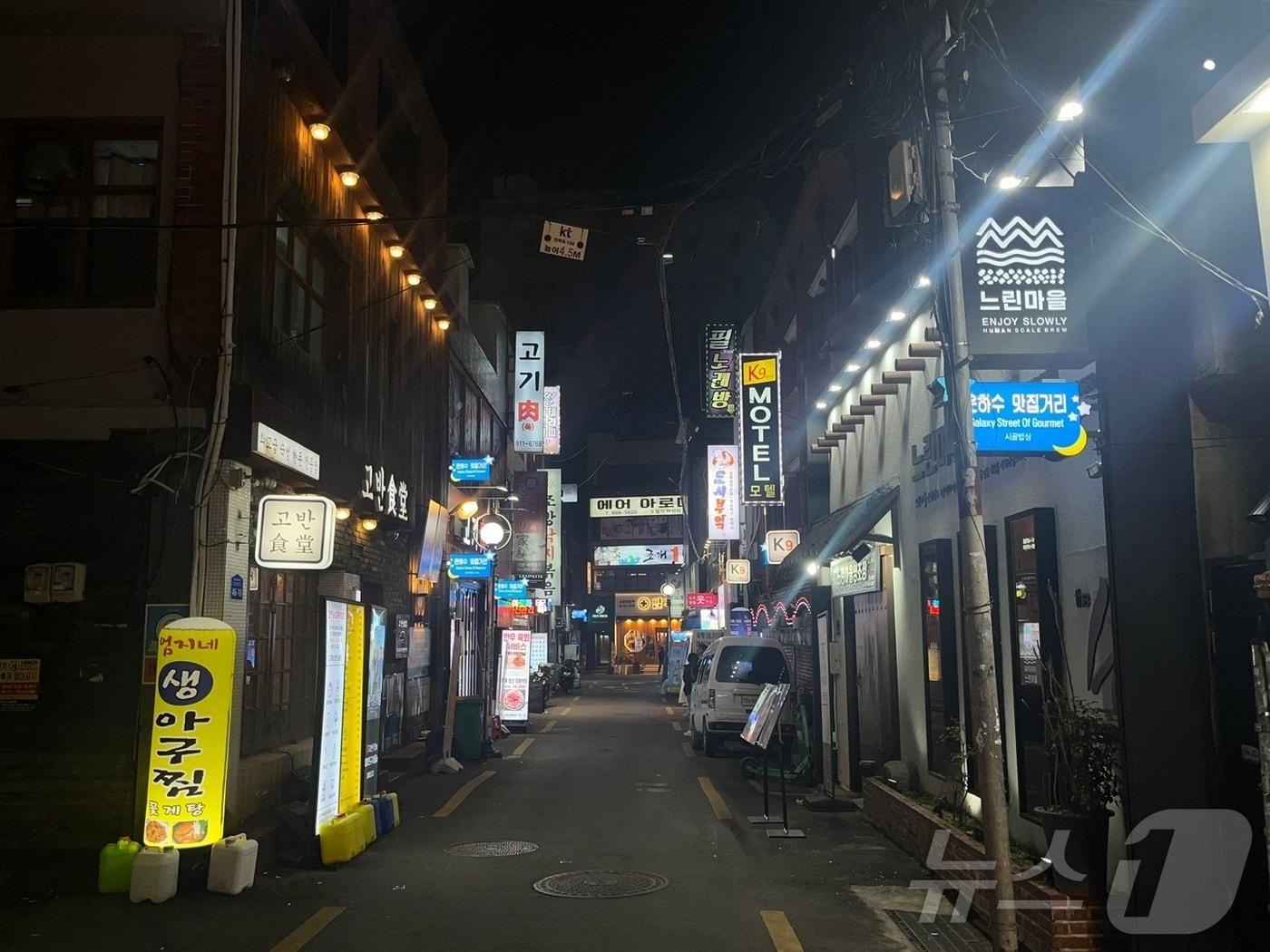 "예전엔 사람 많았는데"…예산, 사업 내용 등 부실 지적구 관계자 "보완 후 올해 사업 추진"13일 오후 7시쯤 식당들이 모여있는 은하수 맛집거리 골목에는 사람이 거의 다니지 않고 있다.2025.2.13/뉴스1 ⓒ News1 장광일 기자부산 부산진구 은하수 맛집거리에 설치된 간판과 풍선기둥.2025.2.13/뉴스1 ⓒ News1 장광일 기자부산 부산진구 전포사잇길 입구에 설치된 간판과 안내 지도.2025.2.13/뉴스1 ⓒ News1 장광일 기자관련 키워드부산부산진골목상권활성화지원사업상인반응장광일 기자 6월 BTS 월드투어…부산시, 바가지 숙박 요금 신고 시스템 운영'겨우 잠들었는데 강아지 짖는 소리가…' 흉기 들고 이웃 찾아간 50대관련 기사부산진구 28~29일 '전포사잇길 맥주축제' 개최부산시, 6월 한 달간 '부산세일페스타' 진행부산 기초지자체들, '상권 자생' 목표로 골목상권 활성화 추진부산시, 설명절 맞이 전통시장 특별 사은·할인 행사 개최