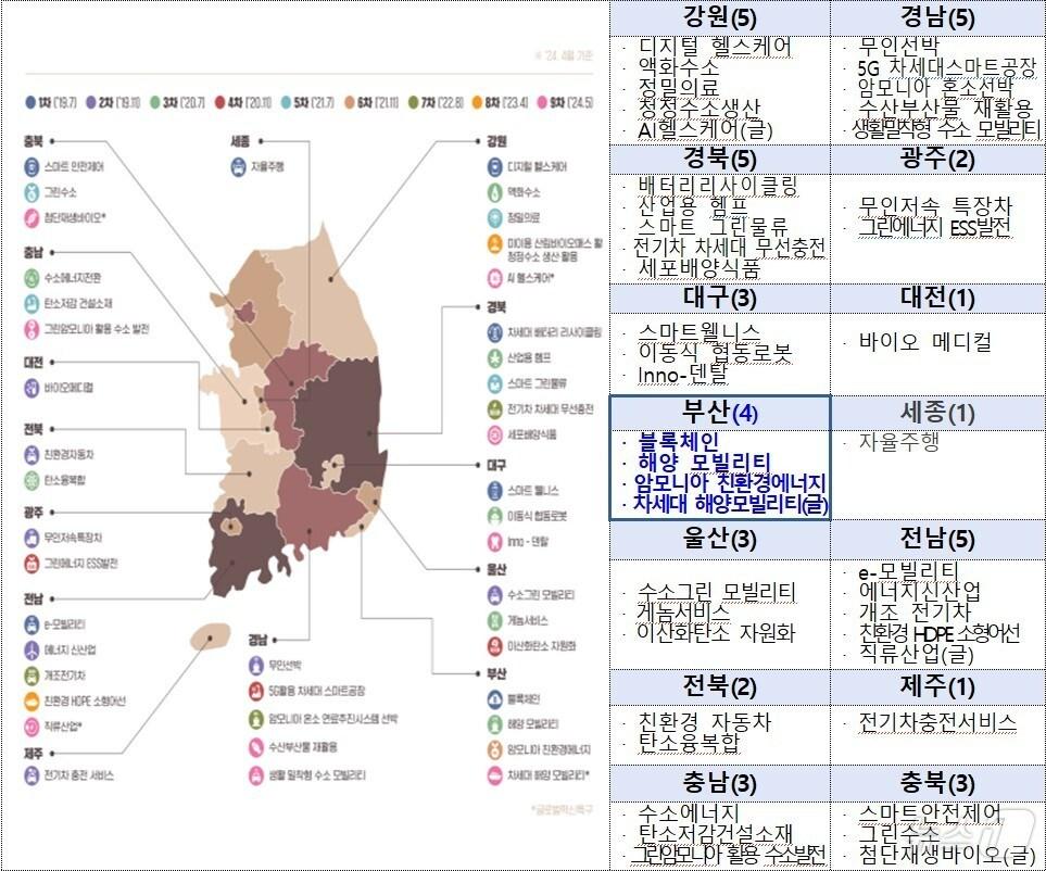 전국 규제자유특구 지정 현황(부산시청 제공. 재판매 및 DB 금지)관련 키워드부산시신산업신기술수요조사관련 기사부산시 '제3회 해상스마트시티 포럼' 17일 개최기후부 특성화대학원 공모에 부산대·동아대 추가 선정박형준 부산시장, 필리핀 무역사절단 만나 무역·투자·인적 교류 논의부산시, 청년인재 모집…1인당 최대 1억원 역량개발비 지원국토정보지리원 '드론쇼 코리아'에서 공간정보 융합 기술 선봬