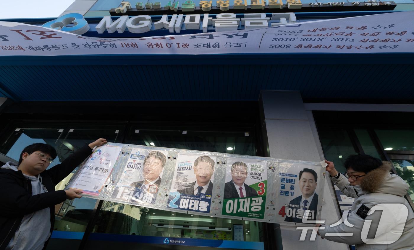 경남선관위, 위탁선거법 위반 혐의로 경찰에 고발서울시 선거관리위원회 관계자들이 24일 오전 서울 종로구 종로중앙새마을금고 혜화지점에서 새마을금고 이사장 선거 벽보를 첩부하고 있다. 2025.2.24/뉴스1 ⓒ News1 이승배 기자관련 키워드새마을금고이사장선거불법선거운동고발경남선관위강정태 기자 김미나 창원시의원 '이태원 참사 유족 모욕' 최초 보도한 기자 불송치경남도, 정부 '행정통합 지원' 방안에 "일시적·단편적"관련 기사6개월 앞으로 다가온 울산 남구청장 선거… 野 '수성' vs 與 '탈환' 총력전"잘한다" 오세훈 38% 김동연 50% 박형준 38%…시도지사 평가 [갤럽][지방선거 누가 뛰나]증평군수, 본선보다 치열한 예선…7∼8명 각축'첫 직선제' 김인 새마을금고중앙회장 당선, 2030년까지 4년 임기김인 새마을금고중앙회장 연임 도전…제20대 회장 선거 후보 등록