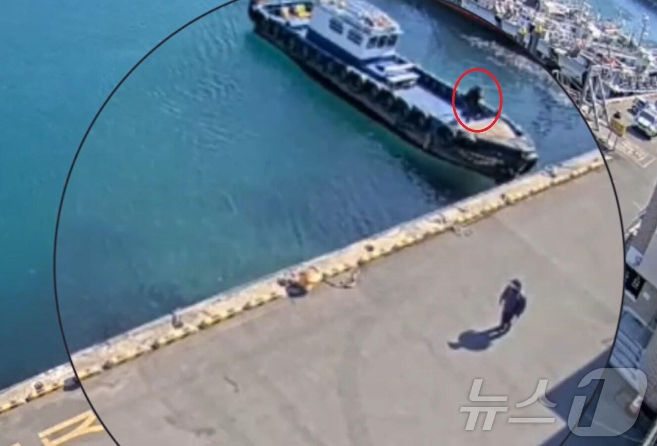 A 씨가 서구 남항에 계류된 선박에 침입해 금품 등을 훔쳐 달아나고 있다.(부산해경 제공. 재판매 및 DB 금지)