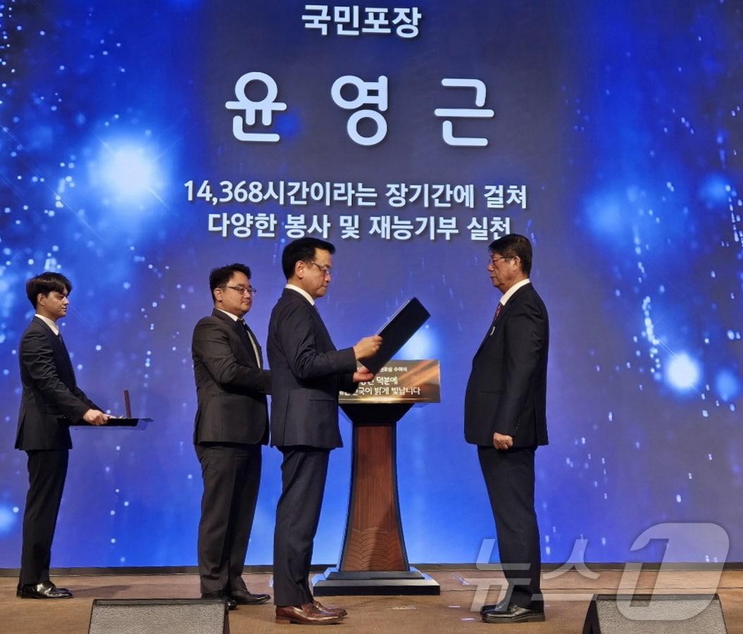 50여년 동안 5000여회 봉사활동 공적 인정받아윤 씨 "쓰임 받을 수 있는 존재 되는 것 목표"최상목 대통령 권한대행 부총리 겸 기획재정부 장관이 지난 14일 서울 용산구 전쟁기념관 피스앤파크 컨벤션센터에서 열린 제14기 국민추천포상 수여식에서 윤영근 씨(오른쪽)에게 국민포장을 수여하고 있다.관련 키워드창원시퇴직공무원윤영근국민포장수상강정태 기자 박완수 경남지사 "부산과 행정통합 최종 결정은 주민투표로"SNT홀딩스, 스맥 대규모 자사주 처분에 반발…"배임적 행위"
