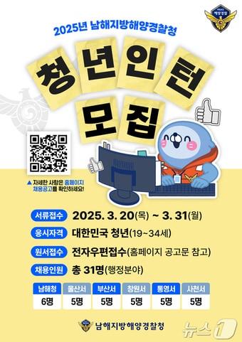 남해해경청 청년인턴 모집 홍보물(남해해경청 제공. 재판매 및 DB 금지)