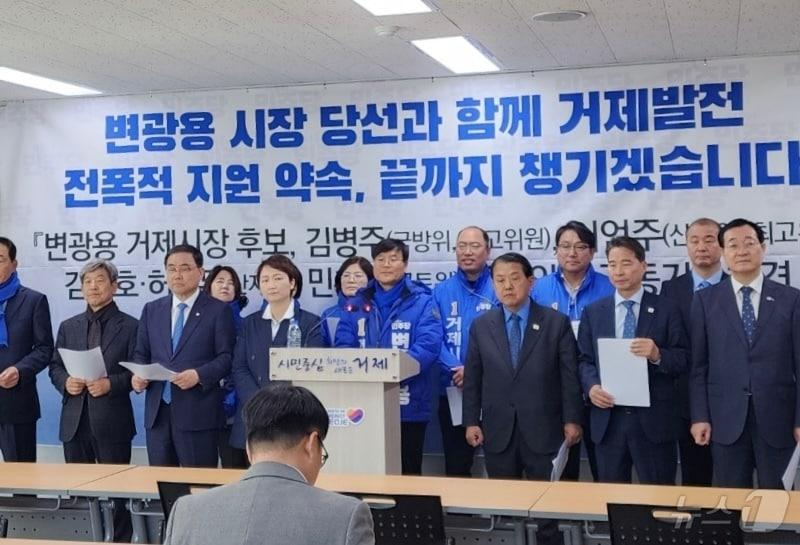 민주 변광용·국힘 박환기 잇따라 출정식무소속 김두호·황영석도 길거리 유세 나서20일 민주당 변광용 거제시장 후보가 시청 브리핑룸에서 같은 당 국회의원들과 기자회견을 갖고 공약 발표를 하고 있다.(독자 제공. 재판매 및 DB금지.)20일 국민의힘 박환기 거제시장 후보가 고현시장 사거리에서 출정식을 갖고 포부를 밝히고 있다.2025.03.20/뉴스1 강미영기자강미영 기자 SK오션플랜트, 사내 우수 협력사 시상식…7개 기업 선정사천 망산공원지구 노후 주거지 정비…도시재생 본격화