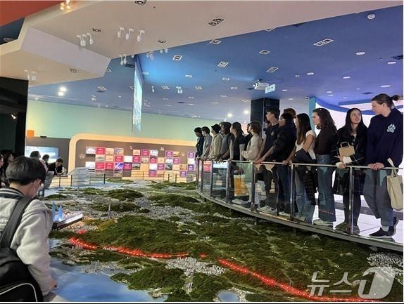 시청 미래도시관 견학, '15분도시 부산' 강연미국 샌도메니코스쿨·부산국제중 학생들이 부산시청 미래도시관을 둘러보고 있다.(부산시청 제공. 재판매 및 DB 금지)관련 키워드부산시미국캘리포니아주샌도메니코스쿨부산국제중관련 기사부산시, 기후변화 주간 운영…내일 오후 8시 10분간 소등