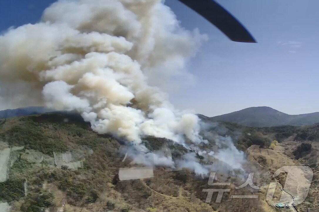 헬기 11대 동원 진화 중하동 산불 현장에서 연기가 치솟고 있다.(산림청 제공. 재판매 및 DB금지.)강미영 기자 노동부, 한화오션 '부당노동행위' 관련 압수수색거제 폐차장 화재 4시간 만에 완진…5000만원 피해(종합)