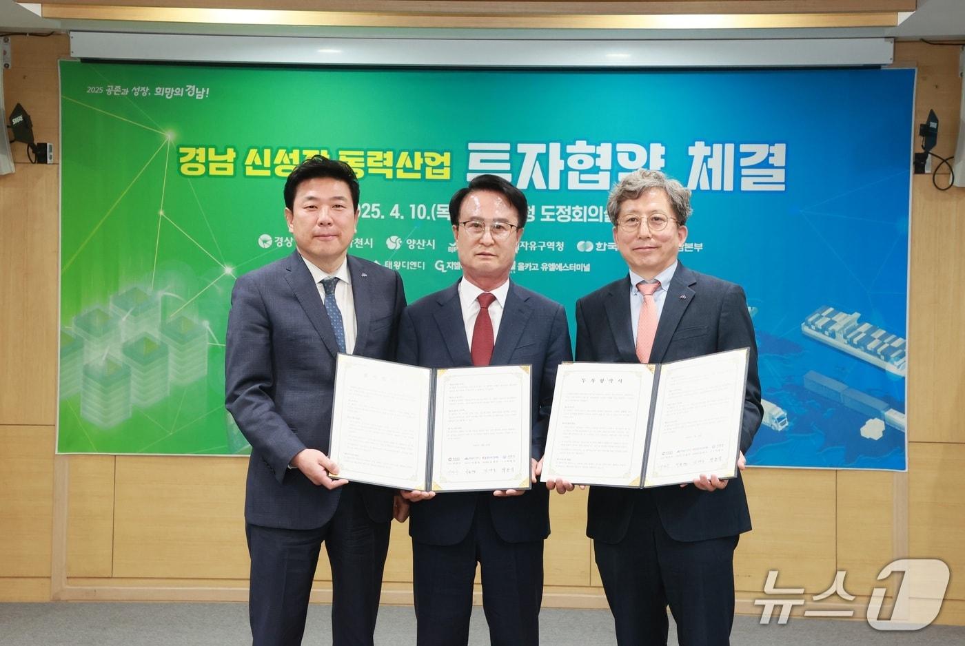 10일 경남도와 사천시, 태왕디엔디가 인공지능(AI) 데이터센터 건립을 위한 투자협약을 체결하고 있다.(사천시 제공. 재판매 및 DB금지.)