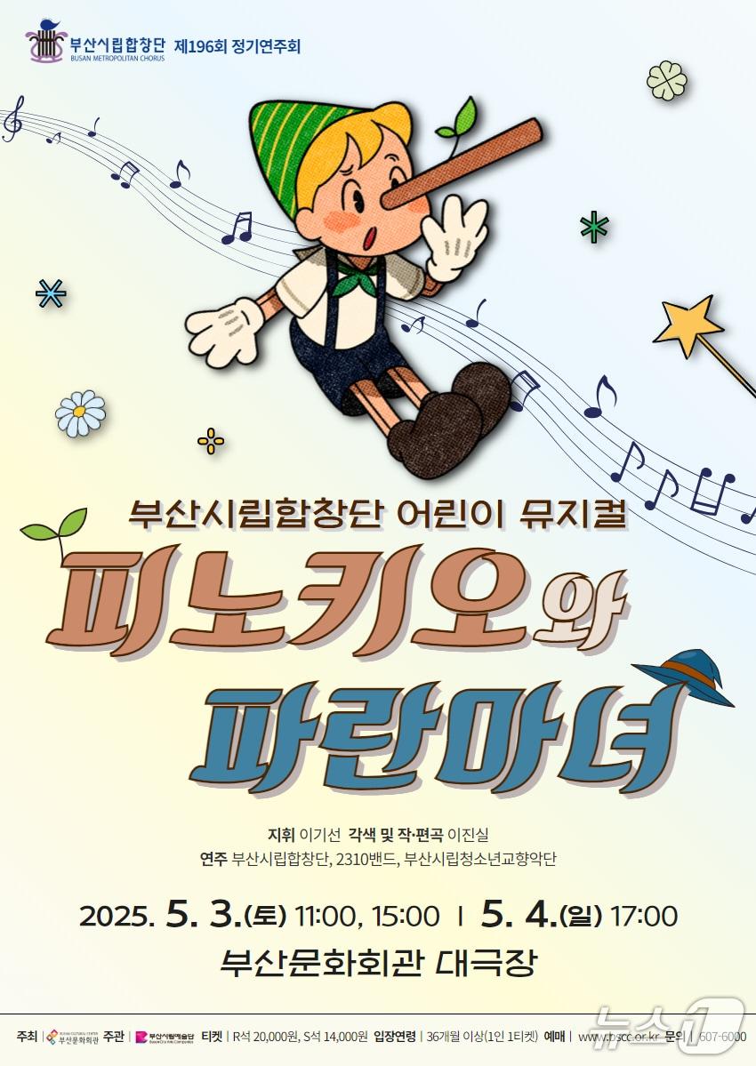 5월3~4일 부산문화회관부산시립합창단 어린이 뮤지컬 피노키오와 파란마녀 공식 포스터.(부산문화회관 제공. 재판매 및 DB 금지)관련 키워드부산부산문화회관부산시립합창단어린이뮤지컬피노키오와파란마녀공연장광일 기자 부산항 계류 선박서 중국인 선원 바다 추락해 숨져신세계 센텀시티 '지역경제 활성화 이바지' 부산시장 표창관련 기사부산시립합창단, 제36회 부산합창제…28~30일 열린다부산문화회관, 9월부터 예술 아카데미 '나는 예술가다' 운영부산시립소년소녀합창단 30일까지 신규 단원 모집롯데몰 동부산점 상반기 최대 쇼핑 축제 '서프라이스 위크'부산시립소년소녀합창단 정기연주회 '엄마, 같이 걸을까' 공연