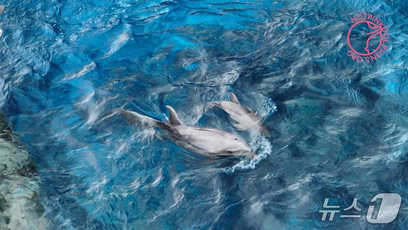 거제씨월드 어미 돌고래와 새끼돌고래.(핫핑크돌핀스 제공. 재판매 및 DB금지.제