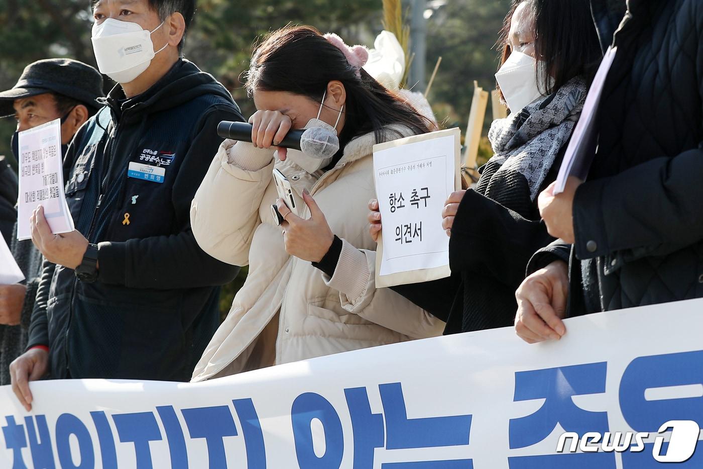 간부 징역 10월·조교사 집유마사회 비리 의혹을 제기하며 스스로 목숨을 끊은 故 문중원 기수의 부인 오은주 씨가 서울 서초구 대검찰청 앞에서 열린 故 문중원 기수 사건 재판 관련 기자회견에서 울음을 터뜨리고 있다.2021.11.24/뉴스1 ⓒ News1 민경석 기자관련 키워드부산문중원마사회대법원징역선고상고기각장광일 기자 롯데, 'mom 편한 꿈다락' 100호점 부산서 개관부산 작년 12월 수출 13억4600만달러…1년 전보다 6.4%↑