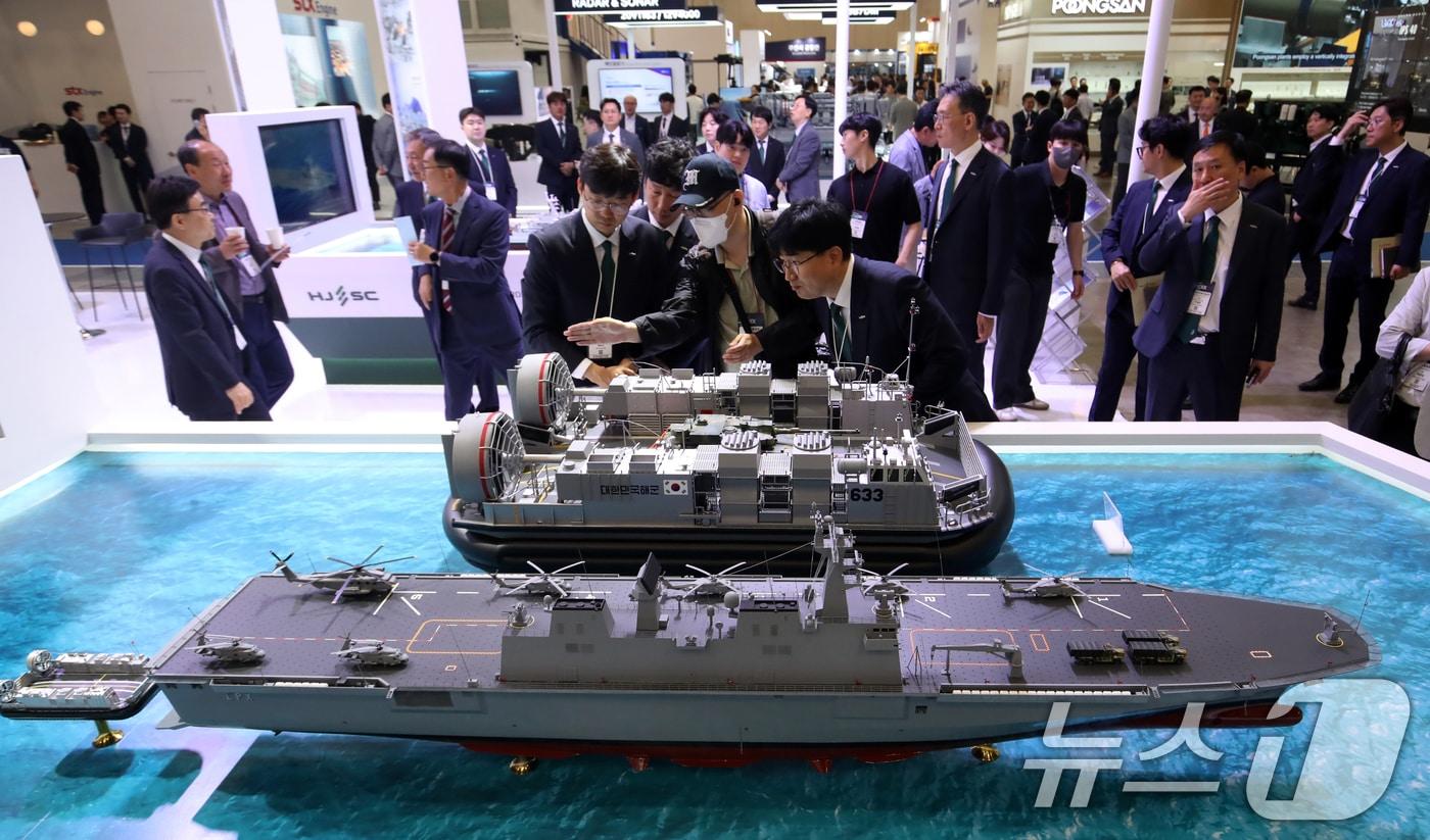 28일 부산 해운대구 벡스코 제1전시장에서 열린 '2025 국제해양방위산업전(MADEX)'에서 참가자들이 한화그룹 부스를 찾아 차세대 무인전투지휘통제함, 전투용 무인수상정, 자폭용 무인수상정 등을 살펴보고 있다. ⓒ News1 윤일지 기자관련 키워드국제해양방위산업전부산시관련 기사광양경자청 하동사무소 '국제해양방위산업전'서 투자유치 활동[뉴스1 PICK]역대 최대 규모 국제해양방위산업전 개막"K-방산 우수성 전 세계에 홍보"…해군, 부산서 국제해양방위산업전[오늘의 주요일정] 부산·경남(28일, 수)'역대 최대 규모' 해군 MADEX 부산서 28일 개막