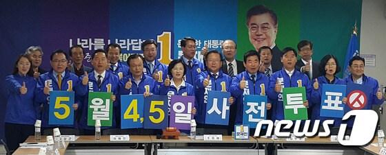 더불어민주당 상임선거대책위원장인 추미애 대표가 1일 오전 대구시 동대구역 회의실에서 열린 국민주권선거대책위원회의에서 참석자들과 오는 4일과 5일 양일간 실시되는 사전투표를 독려하며 엄지손가락을 치켜세우고 있다.2017.5.1/뉴스1 ⓒ News1 정지훈 기자관련 키워드2017대선관련 기사[프로필] 與 새 원내대표에 한병도…'당 안팎 두루 원만한 호남 3선'진주 민주당원들 "최구식 전 의원 입당 반대 촉구"최상화 이어 최구식·송도근까지 민주당행…경남 보수 '술렁'최구식 전 의원, 민주당 입당 신청…당원 자격 심사위 예정1월3일 날짜까지 같아…마두로 체포, 36년전 '노리에가 압송' 재연