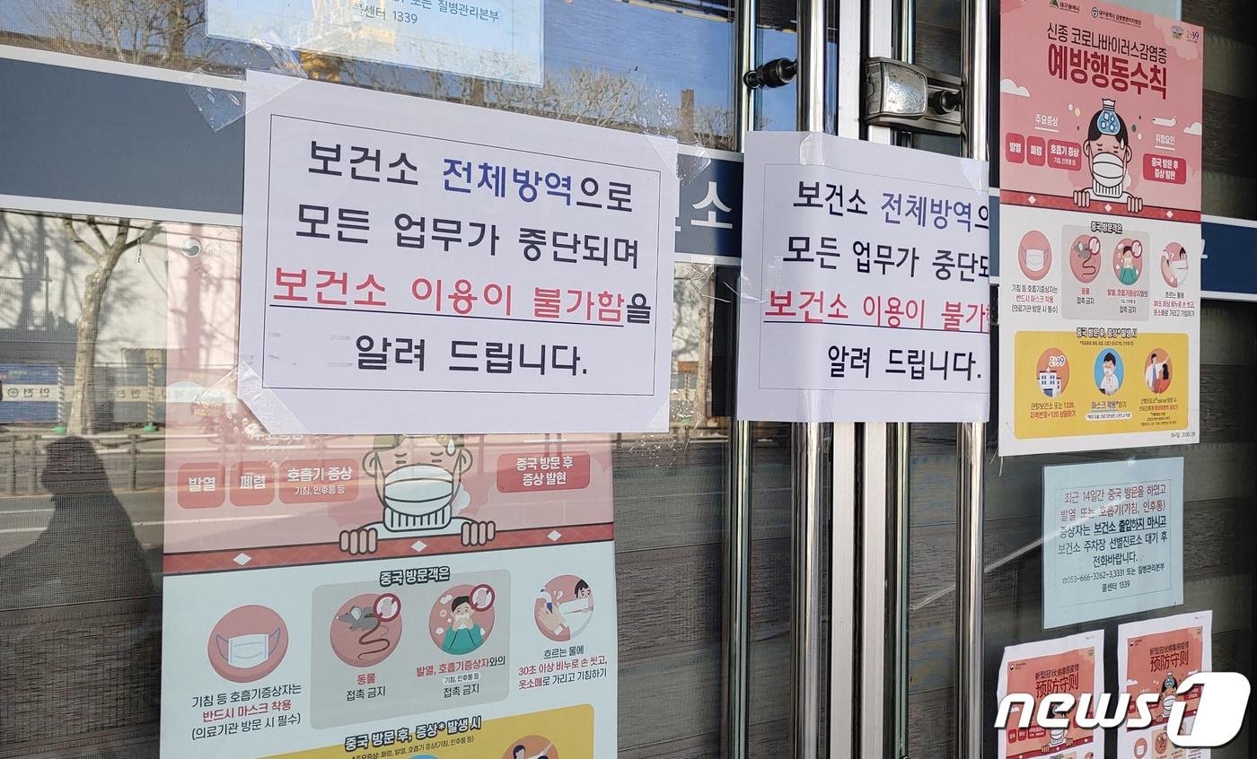 동구 C클럽·퀸벨호텔 뷔페식당·수성구 보건소 등 최근 2주 밀집지역 방문 잦아 2·3차 감염 우려 커져18일 31번째 신종코로나 감염증(코로나 19) 국내 의심 환자가 앙성 판정을 받은 대구시 수성구 보건소가 폐쇄됐다.. 2020.2.18/뉴스1 ⓒ News1 남승렬 기자관련 키워드코로나19신종코로나이재춘 기자 [오늘의 날씨] 대구·경북(16일,금)…낮 최고 8~16도 '포근한 겨울'"대구 취수원, 강변여과수나 하상여과수로 취수 방식 전환 추진"관련 기사질병청 '새 팬데믹' 대비…감염병 유형 나눠 방역·의료 통합대응2024년 재난 사망·실종 387명…재산피해 1조418억 달해스포츠산업 매출액 '84조7000억원' 역대 최대…종사자 46만명팬데믹 위기 대비 '백신 신속도입 범정부 협의체' 설치된다"코로나19 확산 대응 못한 죄?"…전 中우한시장 당적·공직 박탈