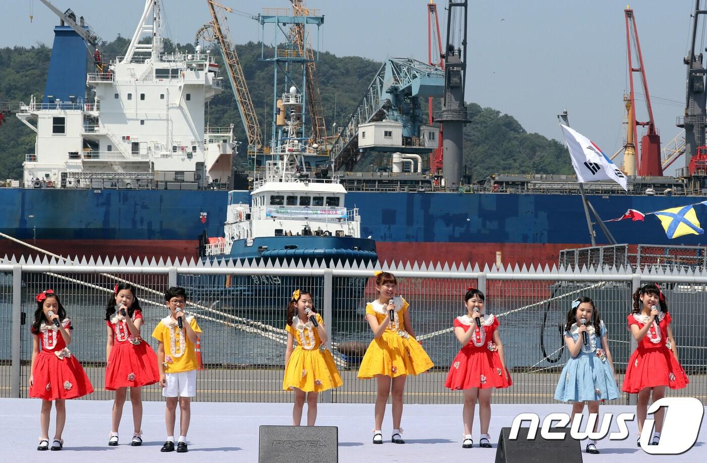 인천 중구 내항 8부두에서 열린 '제23회 바다의날 기념식'에서 바다 동요대회에서 입상한 어린이들이 공연을 하고 있다. ⓒ News1