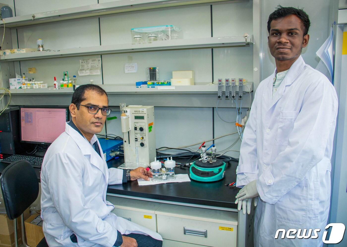 사진 왼쪽부터 DGIST 에너지공학전공 샨무감 교수, 데이비드 쿠마르 에스도스 석사과정생(대구경북과학기술원 제공) ⓒ 뉴스1