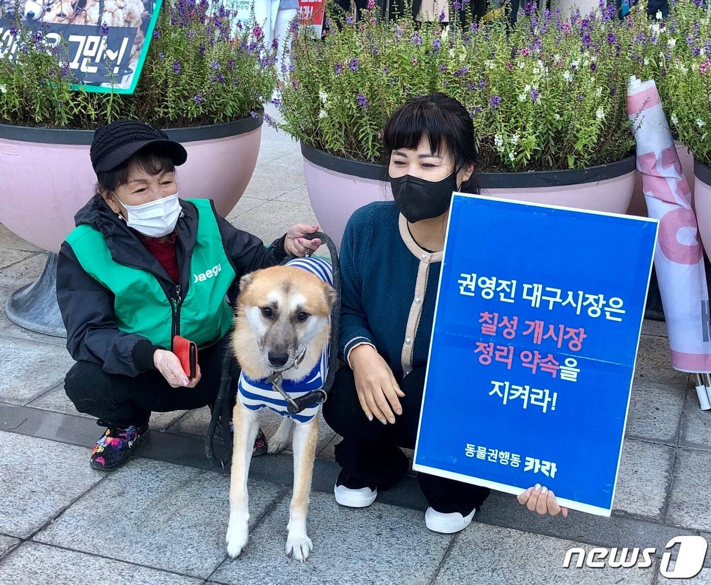 동물보호단체인 '동물행동권 카라' 회원들이 18일 대구시청 앞에서 기자회견을 열고 개식용 금지 동물보호법 개정안 통과와 대구 칠성시장 개시장 폐쇄를 촉구하고 있다. 2021.10.18/뉴스1 ⓒ News1 남승렬 기자남승렬 기자 무면허 미성년자에게 전동바이크 빌려준 업체 대표 3명 기소이철우 "대구·경북 모두 수긍할 내용 확인되면 TK 통합 논의 시작"