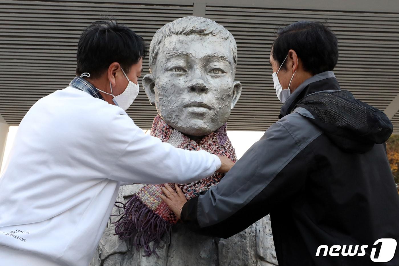 재단 측 "복지 사각으로 인한 비극…장학금 검토"이수호(오른쪽) 전태일재단 이사장과 이정기 서울봉제인지회장이 7일 오후 서울 종로구 전태일다리에서 열린 전태일열사 50주기 버들다리 축제에서 전태일동상에 목도리를 매주고 있다. (사진은 기사 내용과 무관함) 2020.11.7/뉴스1 ⓒ News1 이광호 기자이재명 더불어민주당 대선 후보가 5일 대구 북구 경북대학교 인문학 진흥관에서 열린 제20회 대선 후보 초청 강연회에 참석하고 있다. 2021.11.5/뉴스1 ⓒ News1 공정식 기자남승렬 기자 무면허 미성년자에게 전동바이크 빌려준 업체 대표 3명 기소이철우 "대구·경북 모두 수긍할 내용 확인되면 TK 통합 논의 시작"
