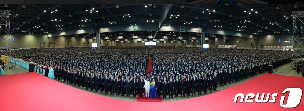 2019년 11월 10일 일산 킨텍스에서 열렸던 신천지예수교 증거장막성전 110기 수료식 모습. 신천지측은 오는 20일 대구스타디움에서 113기 수료식을 열기로 해 대구에 비상이 걸렸다. (신천지 홈페이지 갈무리) ⓒ 뉴스1박태훈 선임기자 정성국 "한동훈 지선 큰 역할 해야…장동혁, 손 내밀어 당 살리는 길을"김재섭 "장동혁, 광장인기 좋았던 황교안 추한 말로 보고 있나"