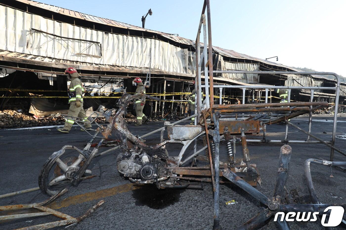10월27일 오전 대구 북구 농수산물도매시장(매천시장) 화재 현장에 불에 타 뼈대만 남은 배달용 오토바이가 세워져 있다. 앞서 25일 오후 8시27분쯤 발생한 화재로 농산A동 152개 점포 중 69곳이 피해를 입었다. 2022.10.27/뉴스1 ⓒ News1 공정식 기자이재춘 기자 [오늘의 날씨] 대구·경북(17일,토)…맑고 낮 최고 6~12도[오늘의 날씨] 대구·경북(16일,금)…낮 최고 8~16도 '포근한 겨울'