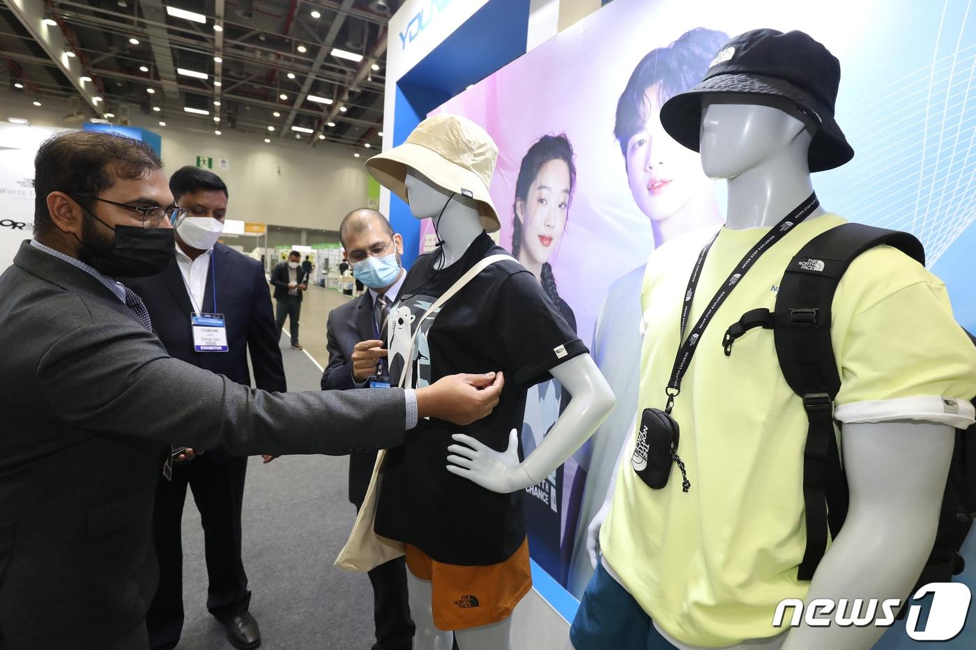 대구시는 오는 2일 대구 엑스코에서 경북도와 함께 '2023 대구국제섬유박람회(Preview in DAEGU, PID)를 연다고 1일 밝혔다. 사진은 지난 2021년 5월 엑스코에서 개막한 '2021 대구국제섬유박람회'를 찾은 외국인들이 플라스틱 재활용 섬유로 만든 제품을 살펴보는 모습. 2021.5.12/뉴스1 ⓒ News1 공정식 기자남승렬 기자 대구시, 베트남 다낭시와 관광·정보통신 협력 강화 MOU대구 시민단체 "지방의원 해외연수 폐지 공약해야"