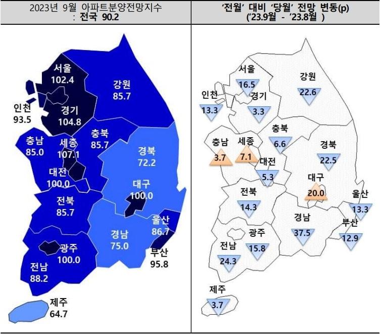 9월 아파트 분양전망 지수관련 키워드대구분양지수100 회복김종엽 기자 대구 제조기업 45% "올해 경기 둔화…경기·수요 변수"대구 아파트 입주전망지수 19.4p↑…"주택시장 회복 기대"관련 기사전국 아파트 입주전망 85.1로 반등…서울·수도권이 회복 주도대구 아파트 분양전망지수 한달 만에 '80선' 회복…전월 比 13.5p↑"전국 분양시장 회복세"…1월 전망지수 80.4, 14.1p 상승대구 제조업 경기전망 7분기 만에 반등…기준치는 19분기째 미달대구 아파트 분양 전망지수 '80선 붕괴'…2개월째 둔화